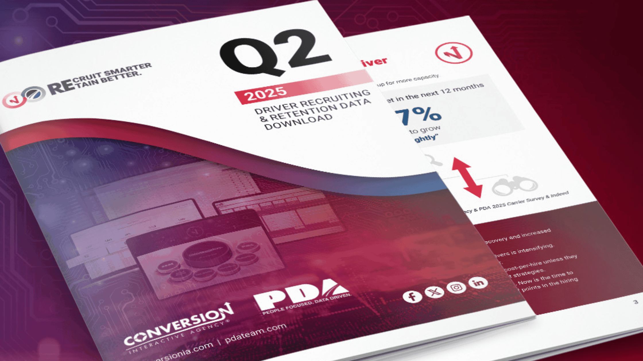 BRENTWOOD, TENN., July 29, 2025 – Conversion Interactive Agency and People. Data. Analytics. (PDA), two leaders in driver recruitment and retention, have released their Q2 2025 Driver Recruiting & Retention Data Download Report. This quarter’s findings reveal a driver market in transition, marked by fleet expansion plans, declining applicant intent, and new challenges in retention and recruiting efficiency.