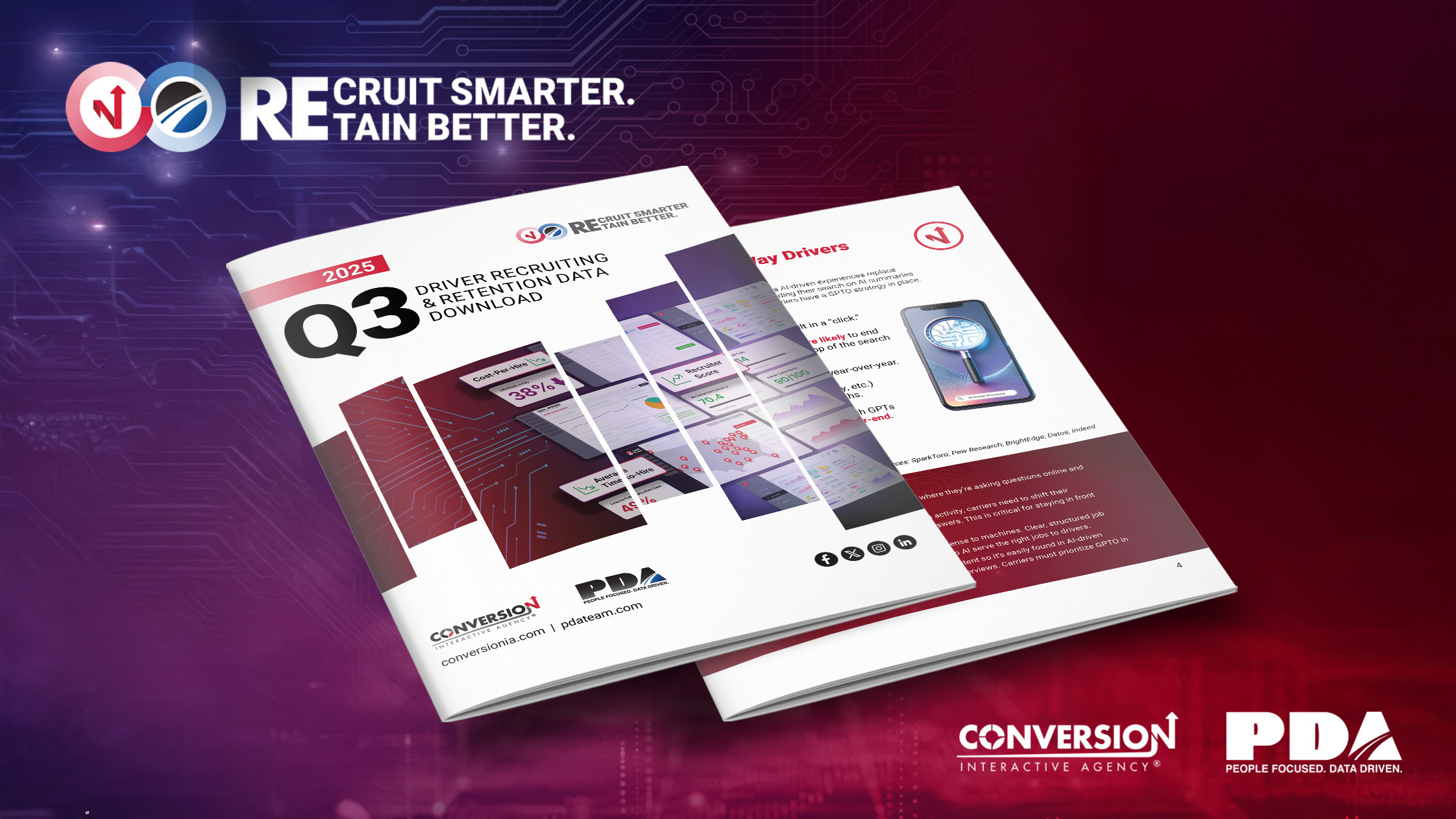 BRENTWOOD, TENN., October 28, 2025 – Conversion Interactive Agency and People. Data. Analytics. (PDA), two leaders in driver recruitment and retention, have released their Q3 2025 Driver Recruiting & Retention Data Download Report, highlighting a truck driver labor market under growing strain from demographic shifts, regulatory change, and evolving driver expectations.