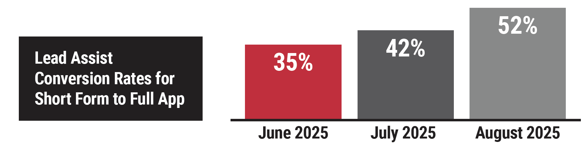 Lead Assist has shown impressive results in increasing conversion rates from short forms to full applications. Over the past few months, its effectiveness has only improved: